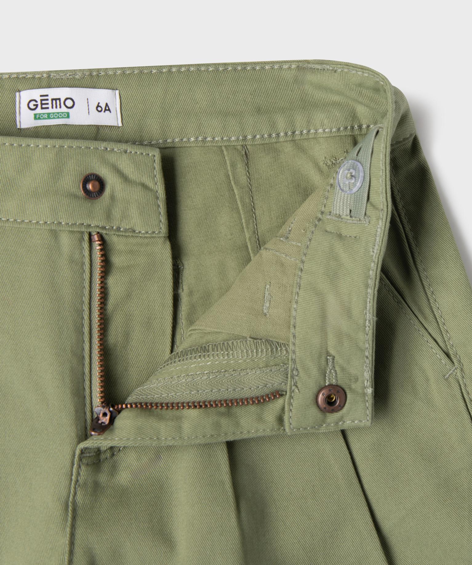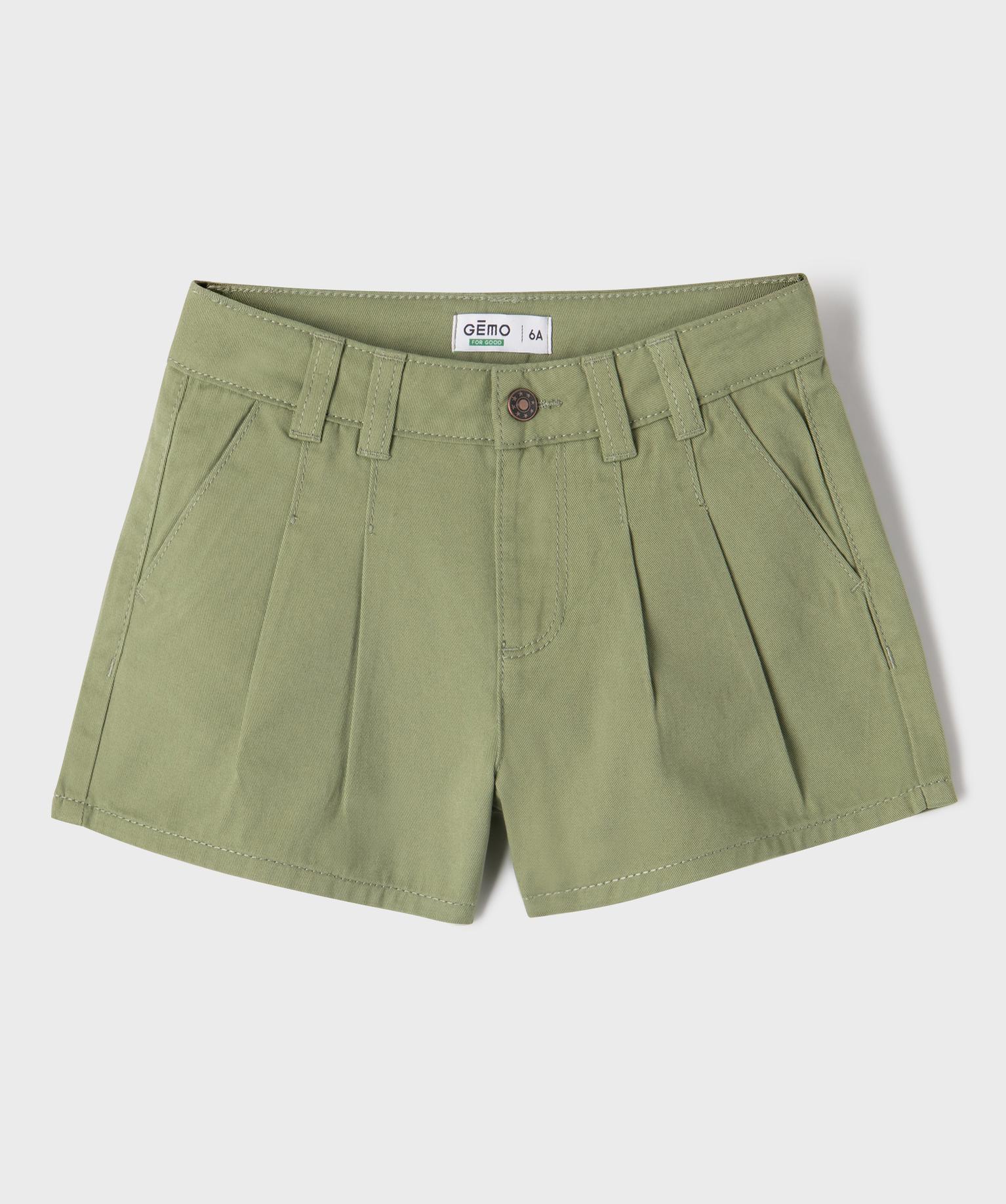 Ce short à pinces allie décontraction et élégance, parfait pour traverser la saison estivale avec style. Un short fille confectionné dans une toile de coton douce et confortable, et doté d’une ceinture ajustable par élastique intérieur. Sa coupe ample, avec pinces sur l’avant, assure aux enfants une grande liberté de mouvement et un maximum d’élégance. Il possède deux poches italiennes, deux poches plaquées au dos et des passants pour ceinture. Un short ample à associer avec une blouse imprimée et des sandales à brides pour une tenue estivale élégante et décontractée.