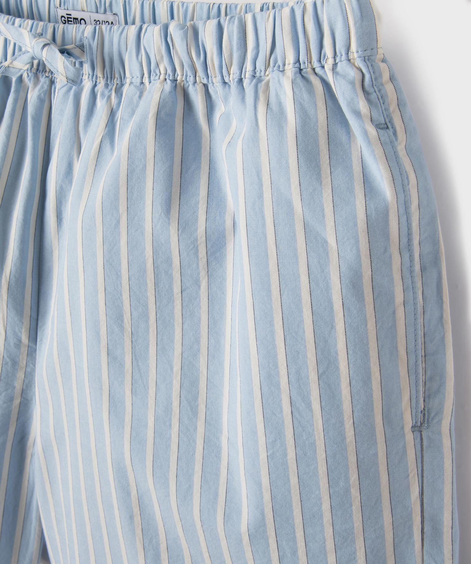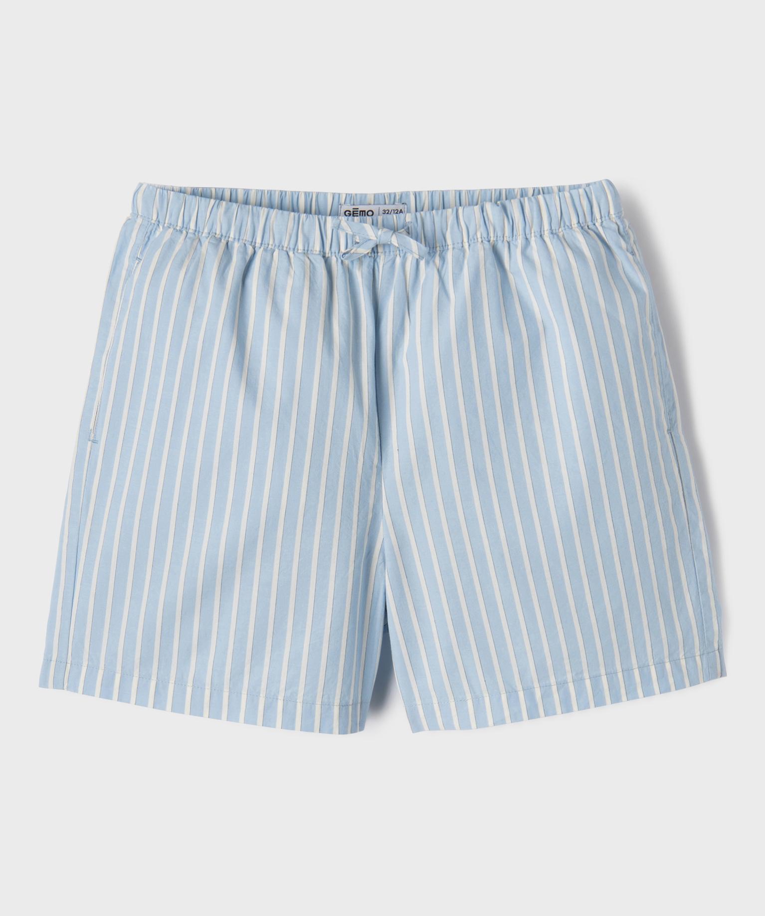 Short en coton rayé à taille élastiquée fille bleu