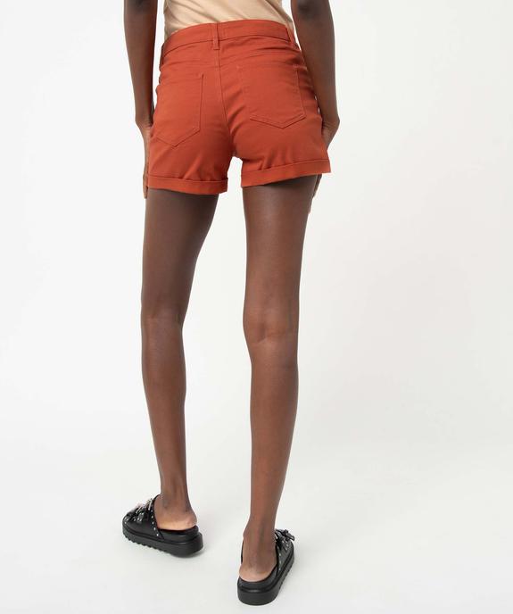 Collectionnez les shorts dans tous les coloris pour la saison estivale ! Ce short femme vous accompagnera dans tous vos looks casual, il se marie aussi bien avec un top à bretelles et des sandales qu’avec une blouse fleurie et une paire d’escarpins ouverts. Ce short en coton stretch, inspiré du jean, affiche une coupe droite, il possède trois poches sur l’avant et deux sur l’arrière. Ses revers cousus en bas des jambes ajoutent une touche de fantaisie et de décontraction.