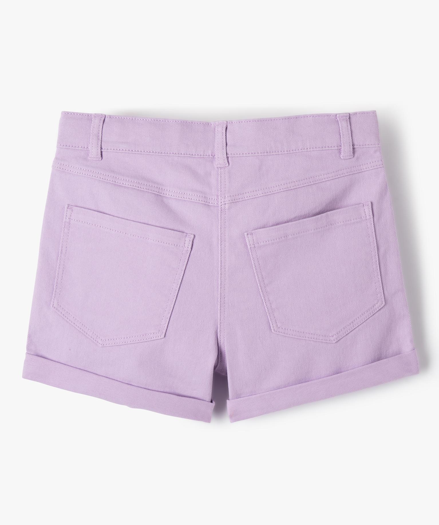 Short en denim avec revers cousus fille violet