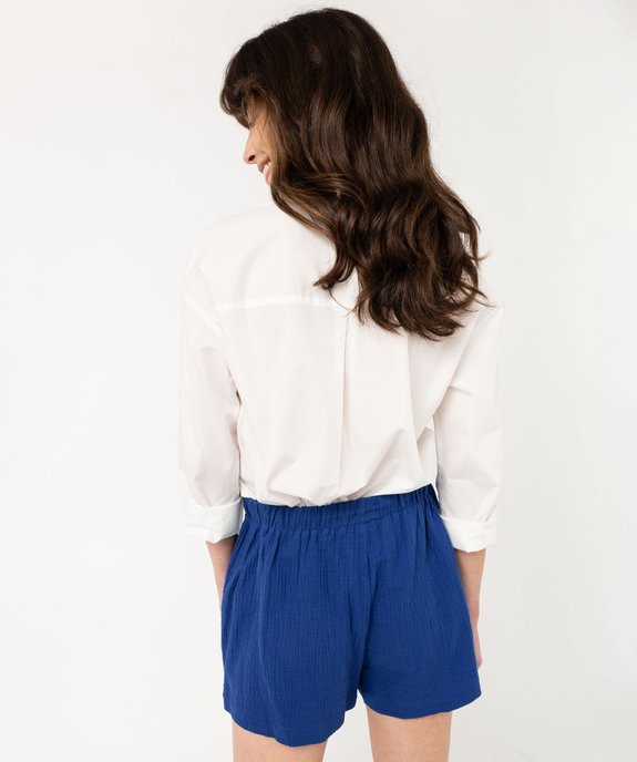 Short en gaze de coton avec ceinture à pompons femme bleu