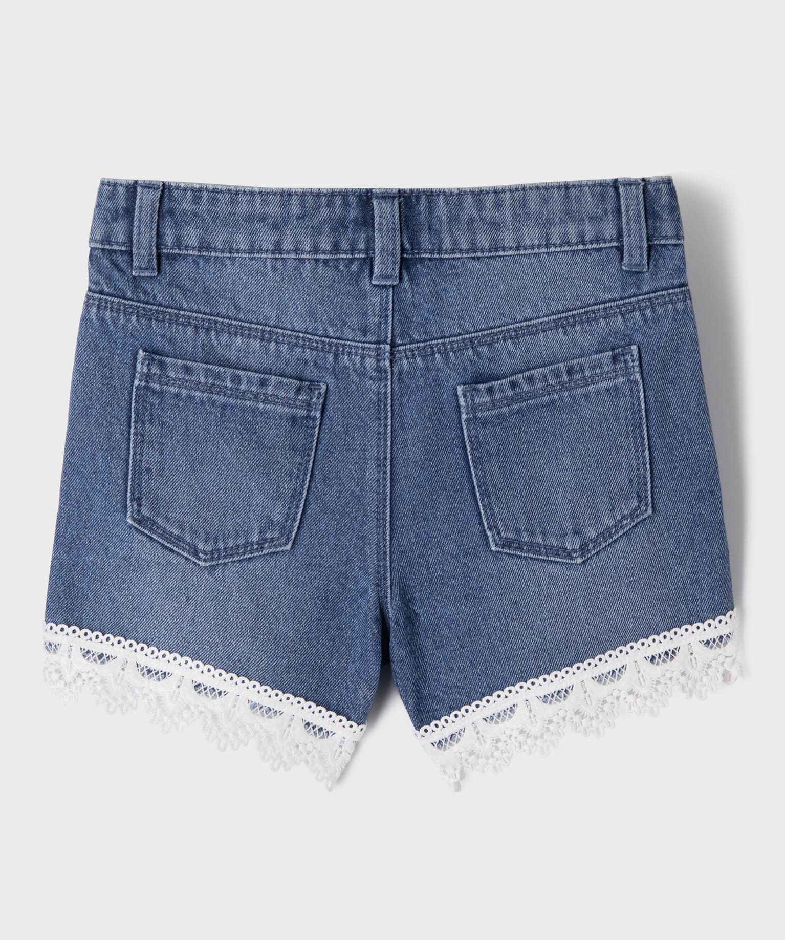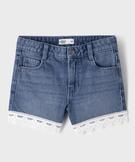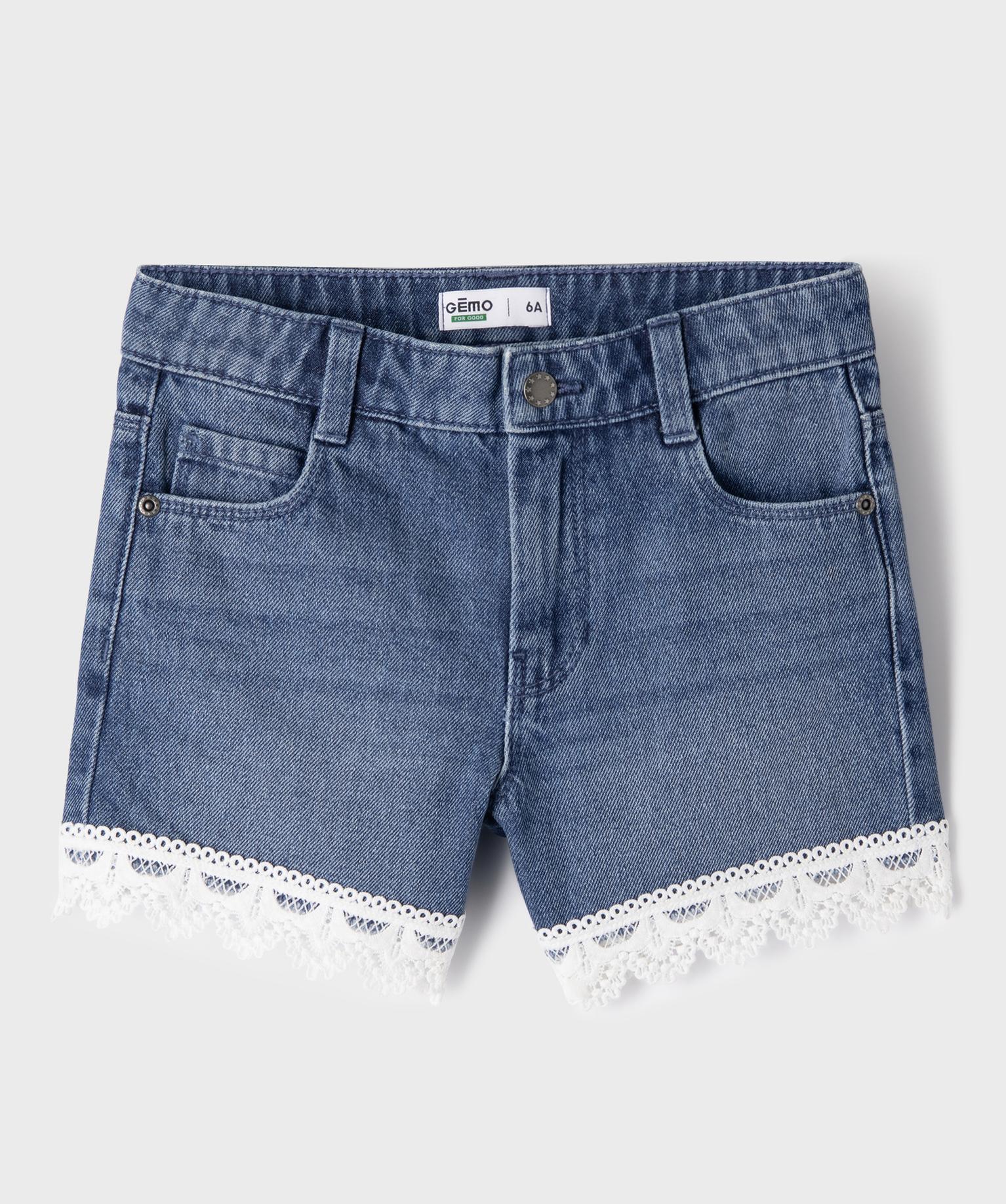 Short en jean avec finitions en dentelle avec taille ajustable fille bleu