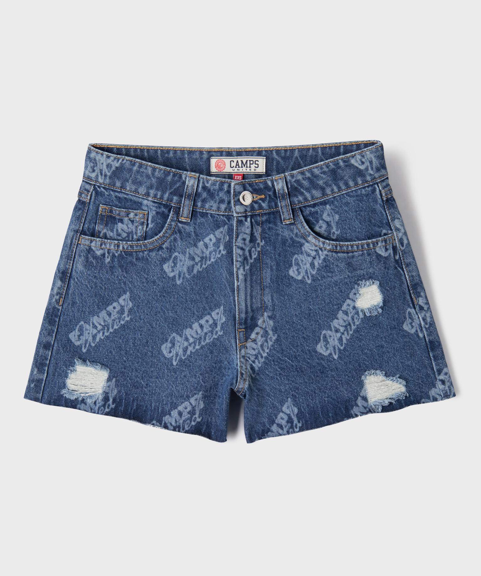 Short en jean avec inscriptions et marques d’usure fille - Camps United bleu