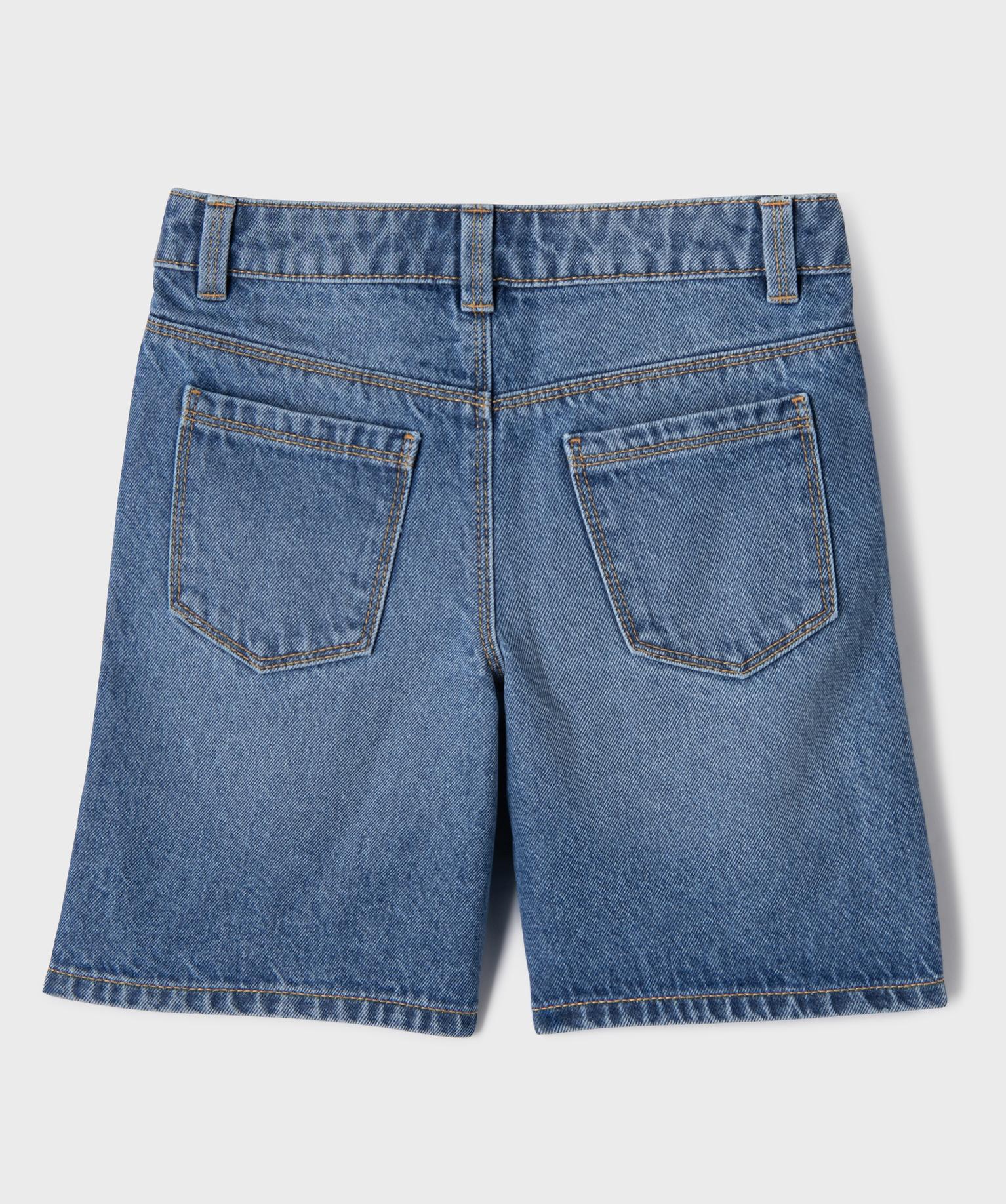 Short en jean avec motif brodé et taille ajustable fille bleu