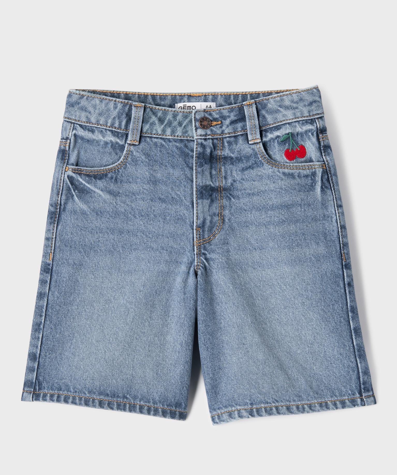 Ce short en jean, orné de cerises brodées sur la hanche, apportera une note gourmande et girly dans le vestiaire denim des filles. Son délavage accentué sur les zones d’usure lui confère une allure décontractée, idéale pour toutes les escapades estivales. Ce short fille possède une taille ajustable par élastique intérieur et se ferme à l’aide d’un zip et d’un bouton. Un short long à porter comme un bermuda ou avec des revers pour un look encore plus cool !