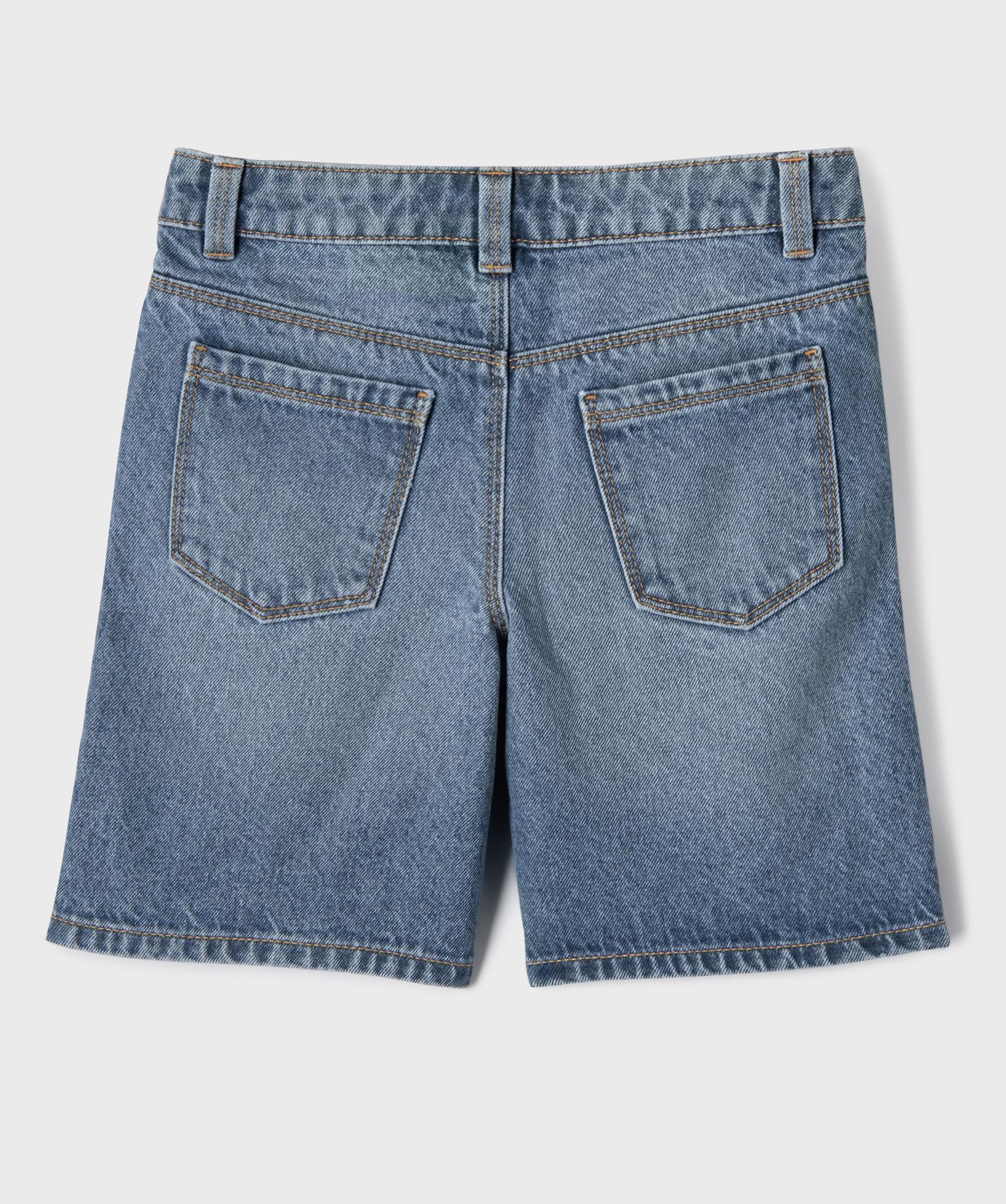 Short en jean avec motif brodé et taille ajustable fille bleu