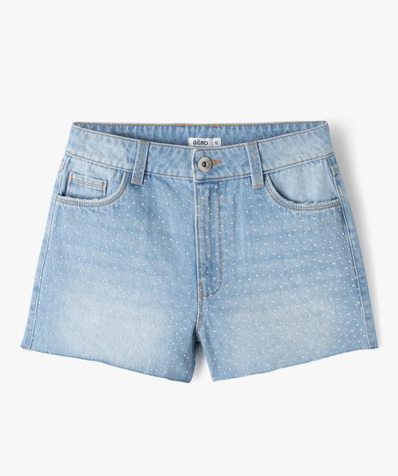 Glamour et branché, ce short pour fille va faire craquer toutes les ados ! Avec ses bords francs et sa multitude de petits clous argentés sur l'avant, il garantit des looks audacieux et girly. Le short en jean est confectionné en denim 100% coton délavé, avec 5 poches élimées et une fermeture zip + bouton. Une pièce mode à porter avec un tee-shirt oversize ou un crop top.