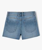 L’incontournable short en jean s’affiche cette saison dans une version délavée et sans coutures en bas des jambes pour offrir aux jeunes modeuses une allure ultra décontractée. Associé à un tee-shirt ou une chemise, ce short fille sera la base de nombreuses tenues estivales. Il est doté de trois poches sur l’avant et de deux poches plaquées au dos. Il se ferme à l’aide d’un zip et d’un bouton et s’ajuste grâce à un élastique dissimulé à la taille. Un short sans coutures aux allures grunge inspiré de la mode des années 90.