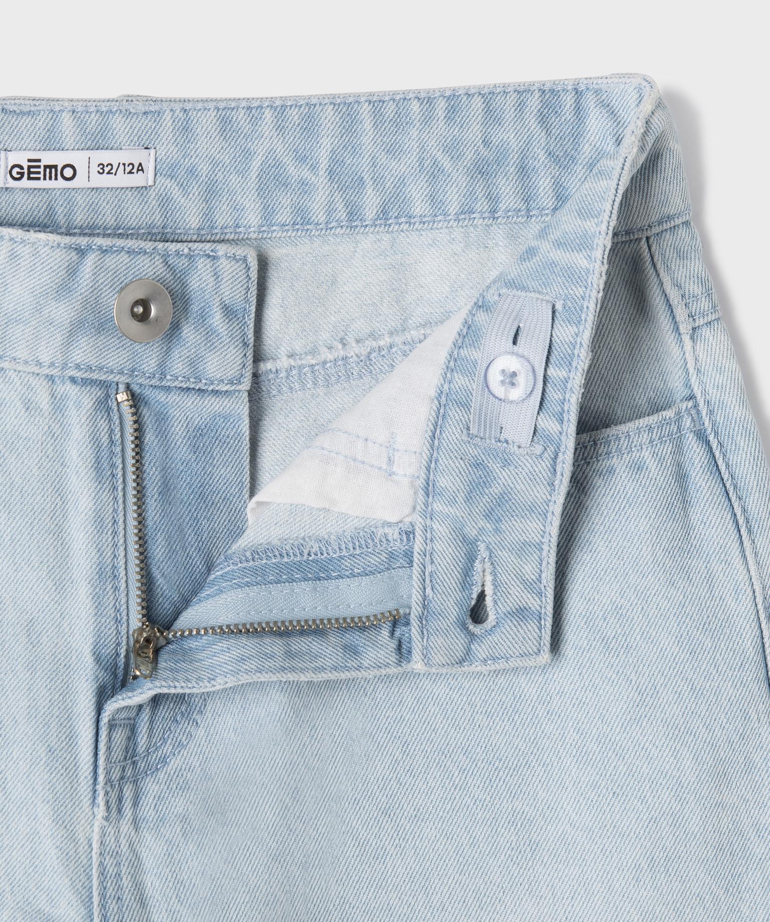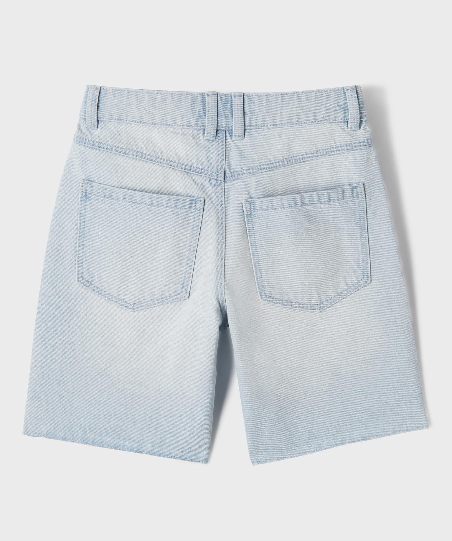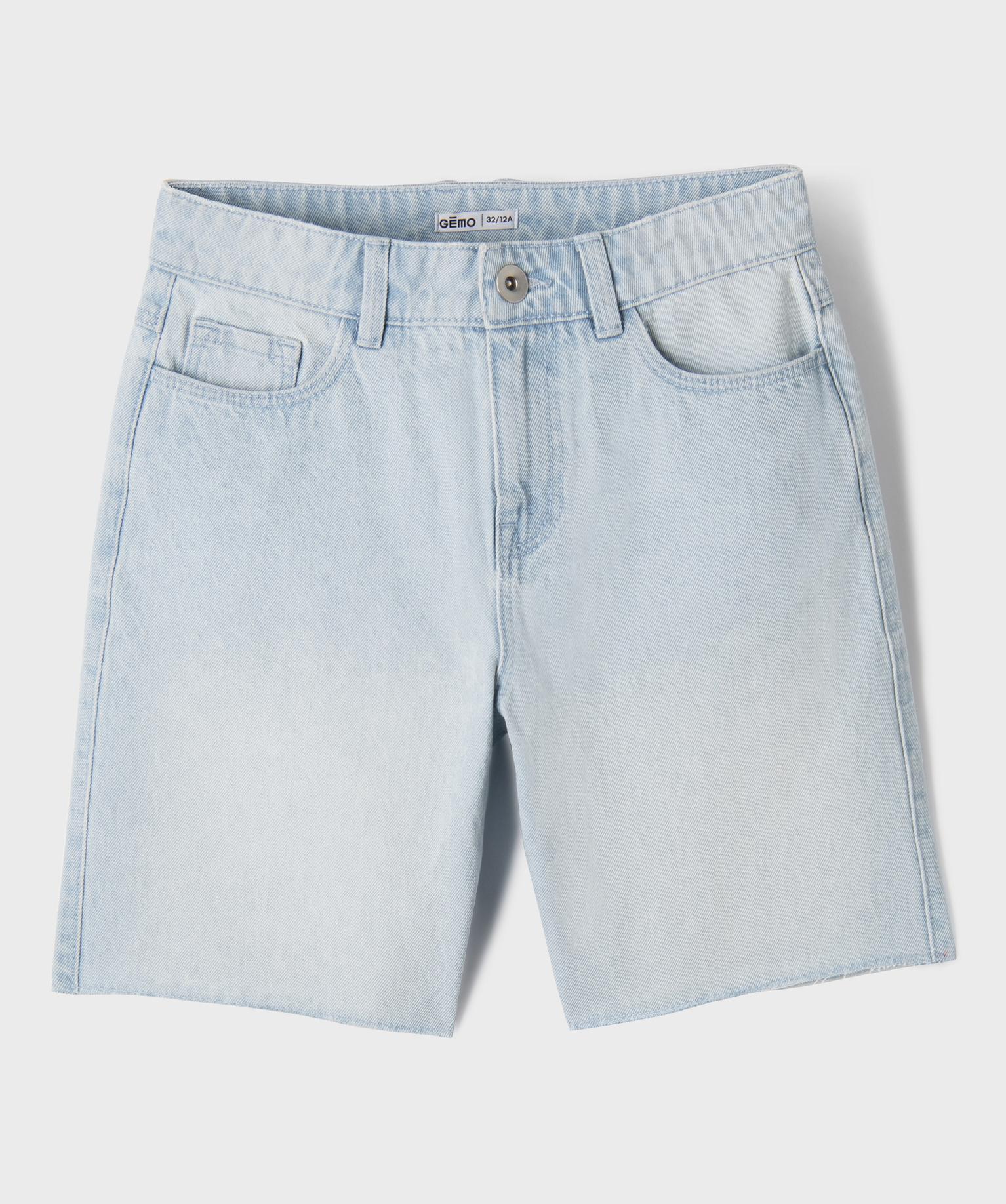 Short en jean droit et long à finition bord-franc fille bleu clair