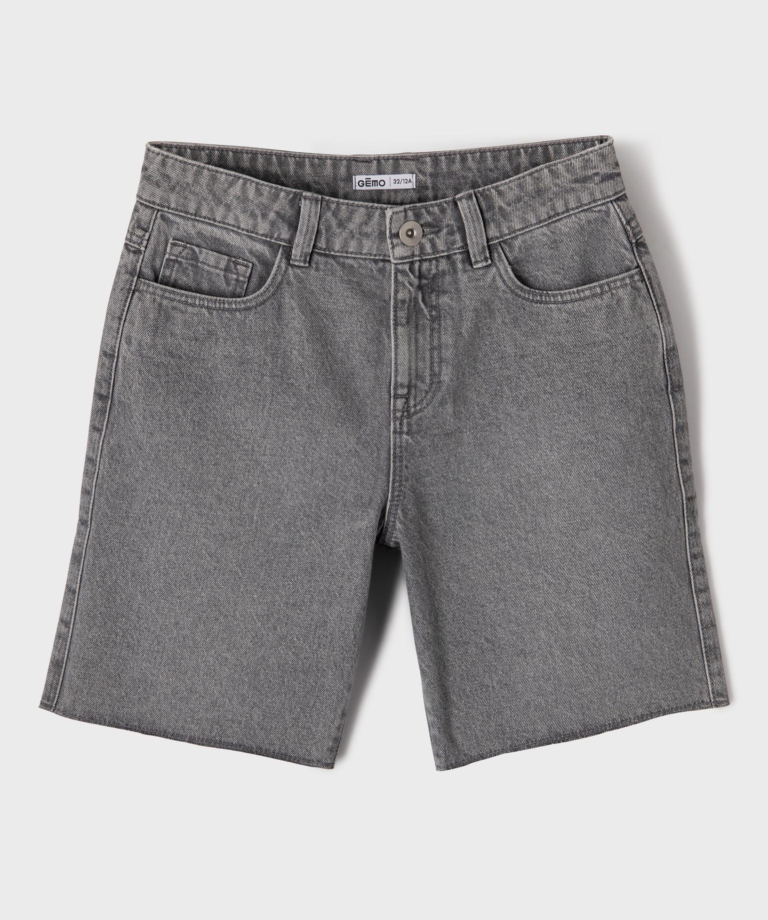 Short en jean droit et long à finition bord-franc fille gris