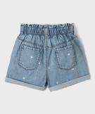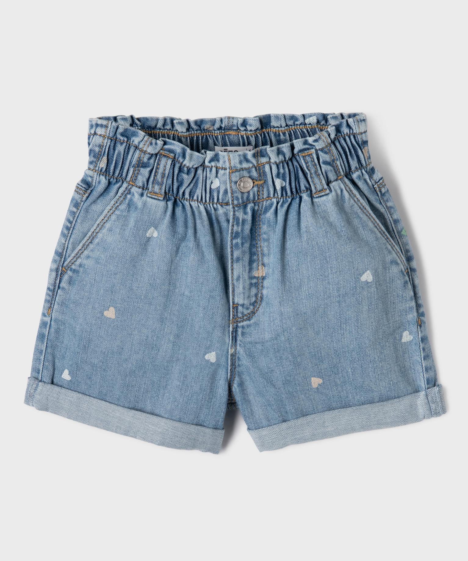 Short en jean taille haute paperbag à motif cœurs fille bleu