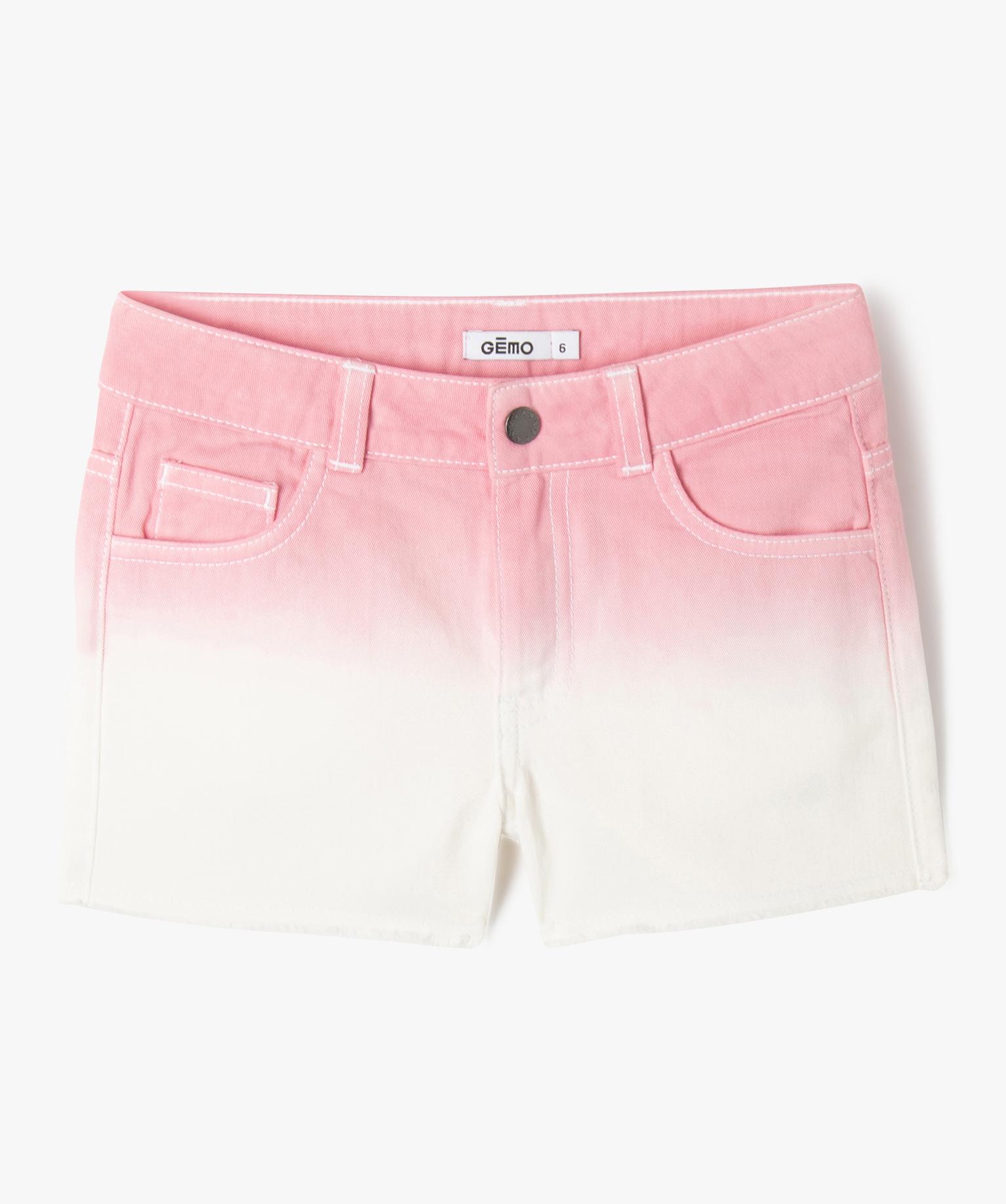 Short en jean teinture spéciale coloris unique dégradé fille rose