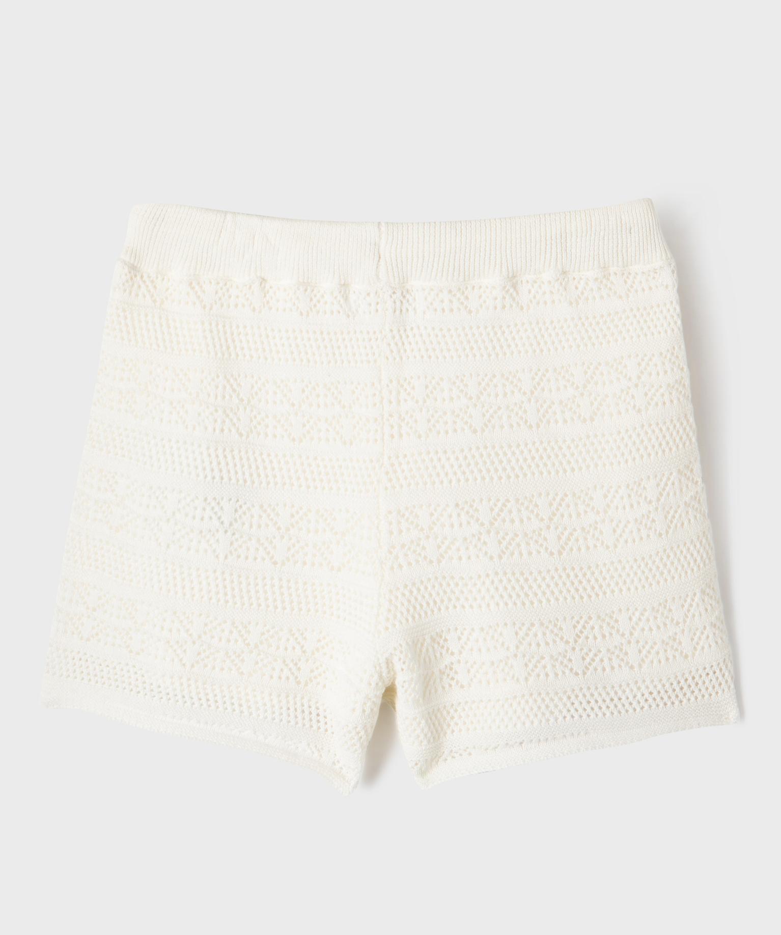 Craquez pour le look vintage de ce short en maille ajourée 100% coton. Un short fille esprit macramé affichant de jolis motifs tout en restant parfaitement opaque grâce à une doublure ton sur ton. Il est doté d’une ceinture en bord-côte ajustable à l’aide d’un cordon coulissant. Un short uni à porter avec un débardeur en crochet et des sandales à brides.
