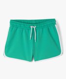 Offrez à votre fille un confort ultime et un look tendance avec ce short en maille. Confectionné dans une matière légère et respirante, ce short fille reste confortable par tous les temps. Les biais contrastants ajoutent une touche de dynamisme d’inspiration sportswear. Ce short est doté d’une taille élastique ajustable par cordon coulissant. Polyvalent et stylé, il est idéal pour les journées décontractées, les activités sportives ou pour créer des looks estivaux branchés.
