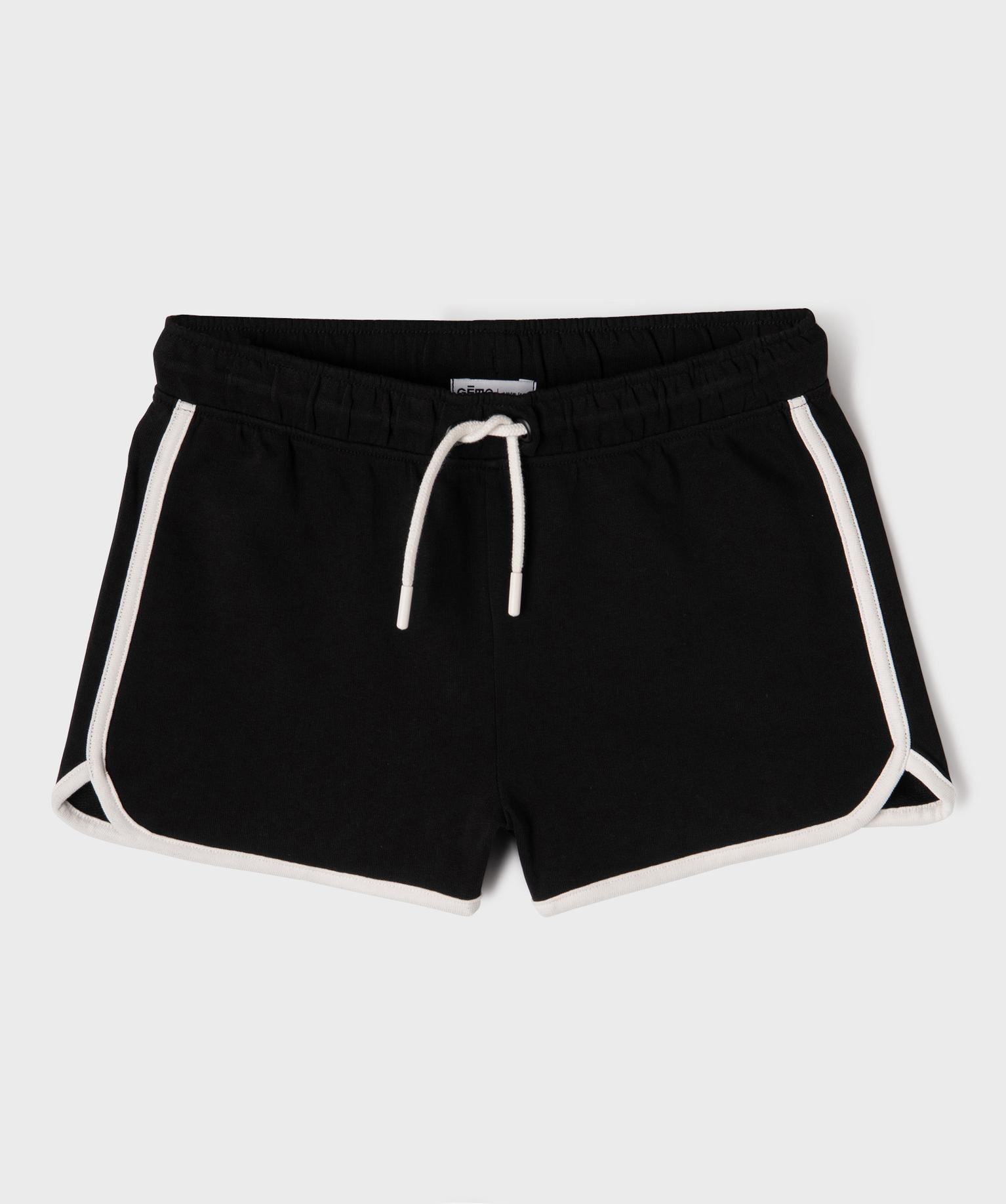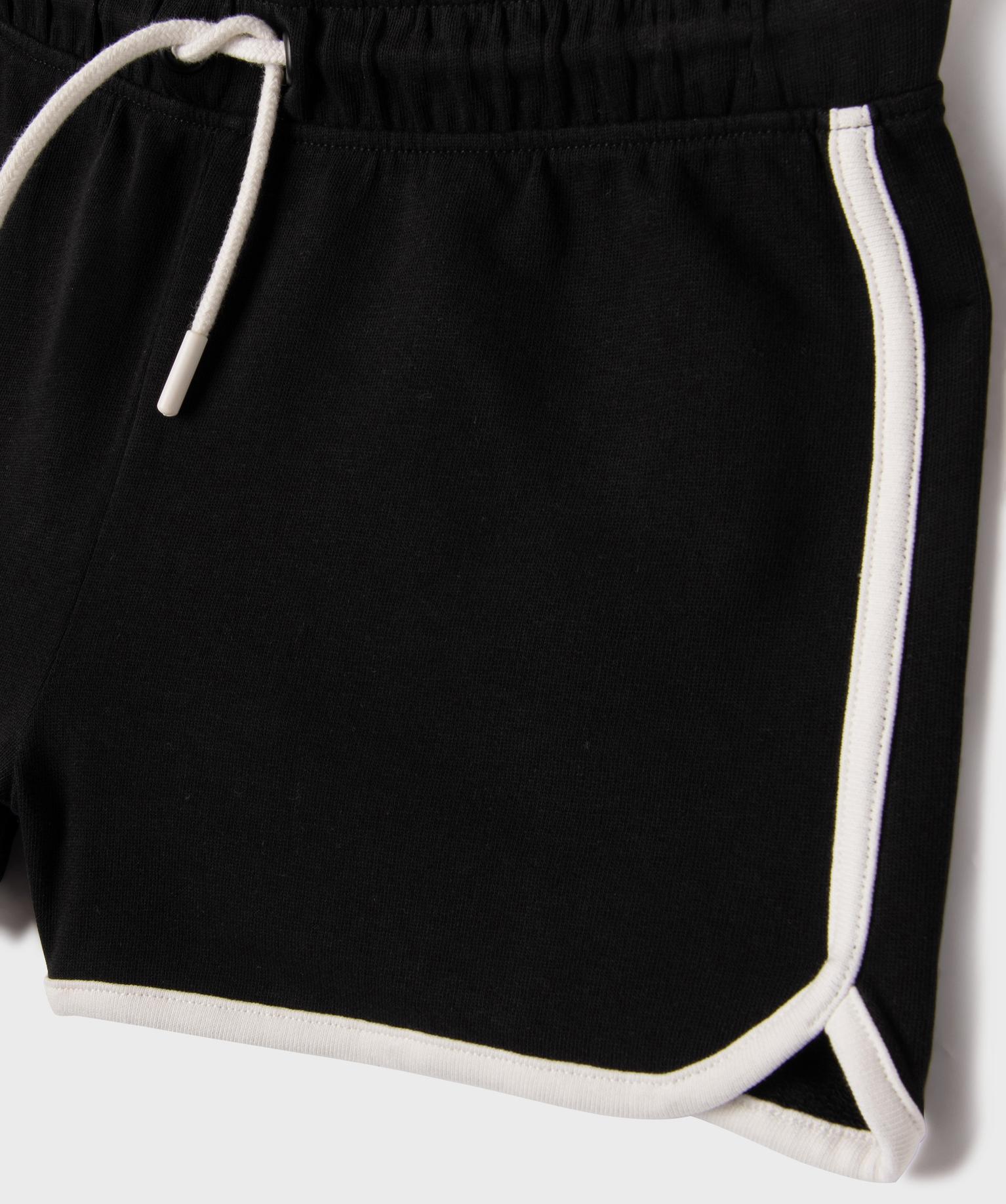 Ce short fille en maille French Terry offre confort et allure sportive. Un modèle léger confectionné en coton et coton recyclé, avec intérieur bouclette, très agréable à porter en saison estivale. Son coloris uni est dynamisé par des biais contrastants. Il possède une ceinture élastique ajustable par cordon coulissant pour un ajustement idéal. Un modèle à porter comme short de sport avec un tee-shirt et des baskets ou par-dessus un maillot de bain pour rentrer de la plage.