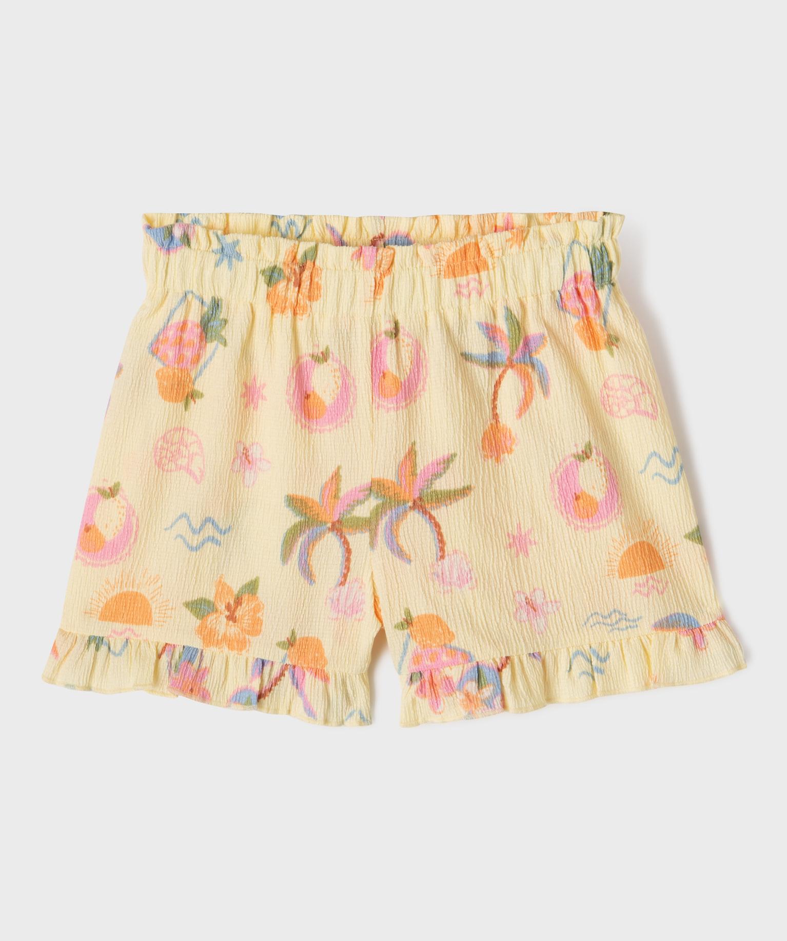 Short en maille texturée imprimée à volants fille jaune