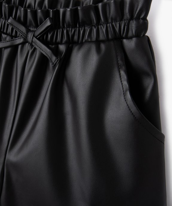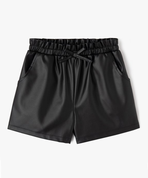 Ajoutez une touche rock dans le vestiaire de votre fille grâce à ce short en matière synthétique cuir imitation. L’esprit rebelle de ce short fille est assagi par une coupe ample et une ceinture froncée qui souligne la taille avec élégance. Un short uni facile à enfiler qui permet aux enfants de confectionner des tenues tendance en un clin d’oeil ! Petit noeud fantaisie à la taille. Deux poches latérales.