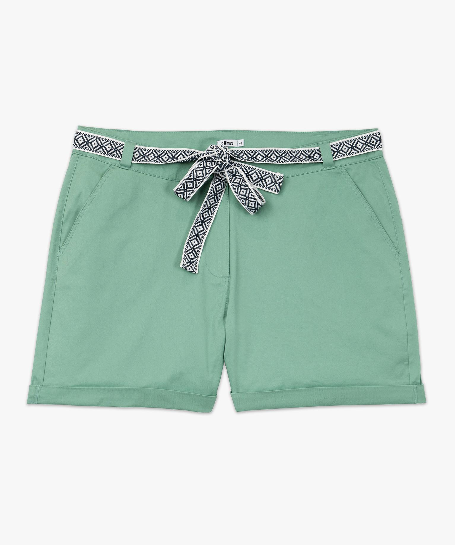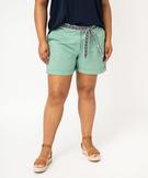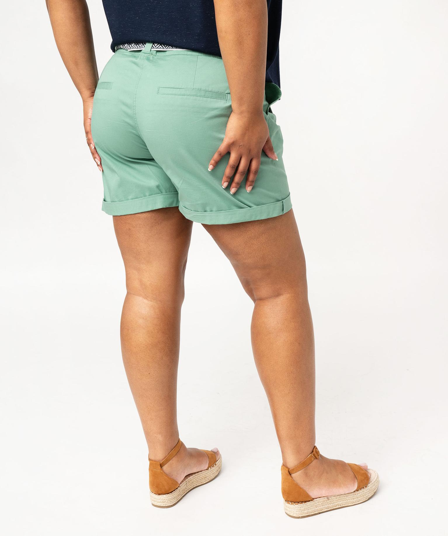 Confortable et élégant, le short en toile fait partie des pièces phare du dressing estival. Confectionné en coton extensible, ce short femme grande taille (du 46 au 54) offre un tomber impeccable et beaucoup de confort. Il arbore une coupe ample avec deux poches italiennes et deux fausses poches raglan au dos. La taille de ce short est mise en valeur grâce à une jolie ceinture tressée à motifs d’inspiration ethnique. Un short à porter avec un tee-shirt et des baskets pour un look décontracté ou avec une chemise et des sandales pour un look plus élégant.