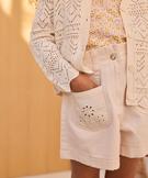 Short en toile avec poches brodées fille - LuluCastagnette blanc chine