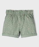 Short en toile de coton imprimée avec taille paperbag fille kaki