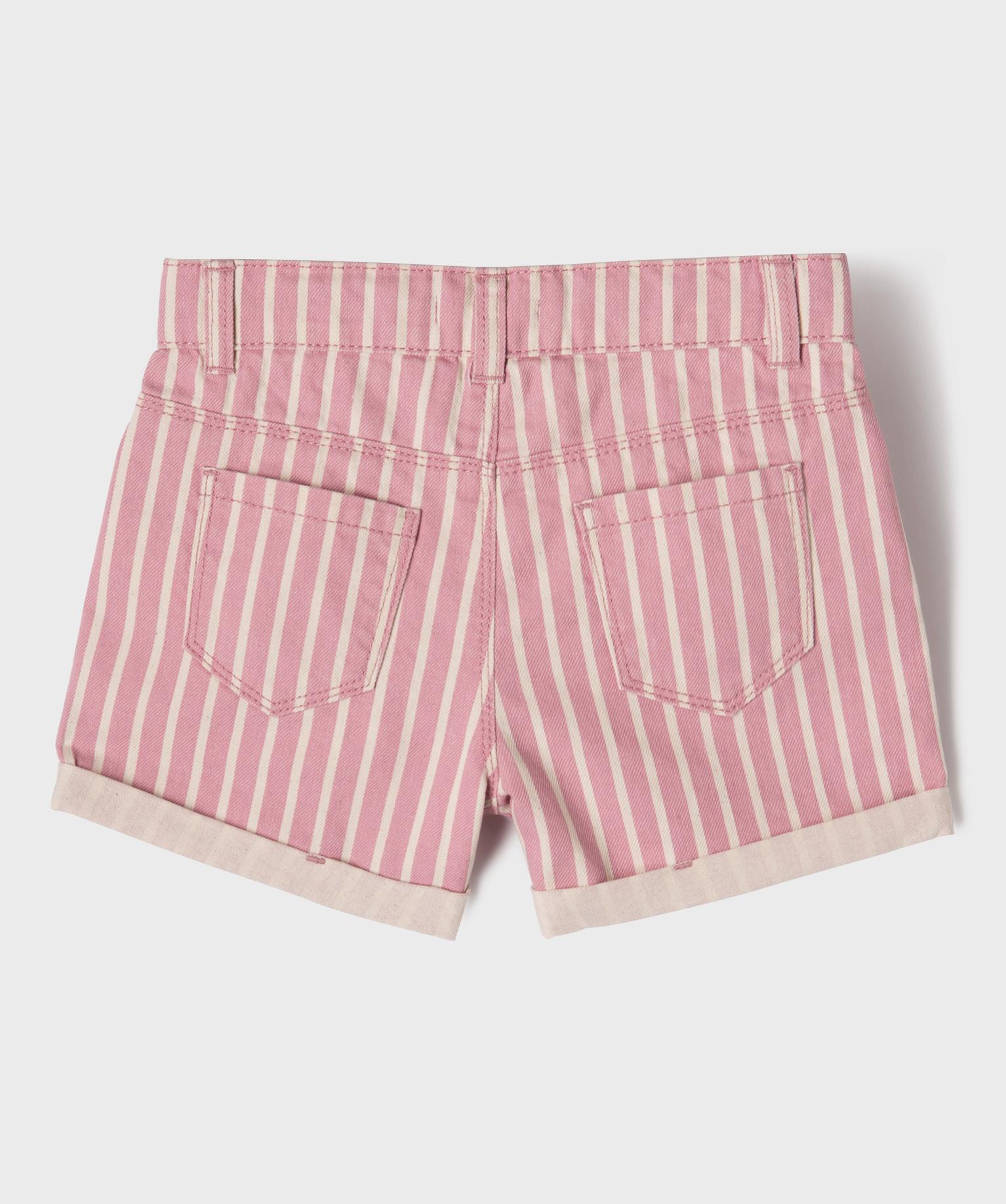 Short en toile de coton rayée fille rose