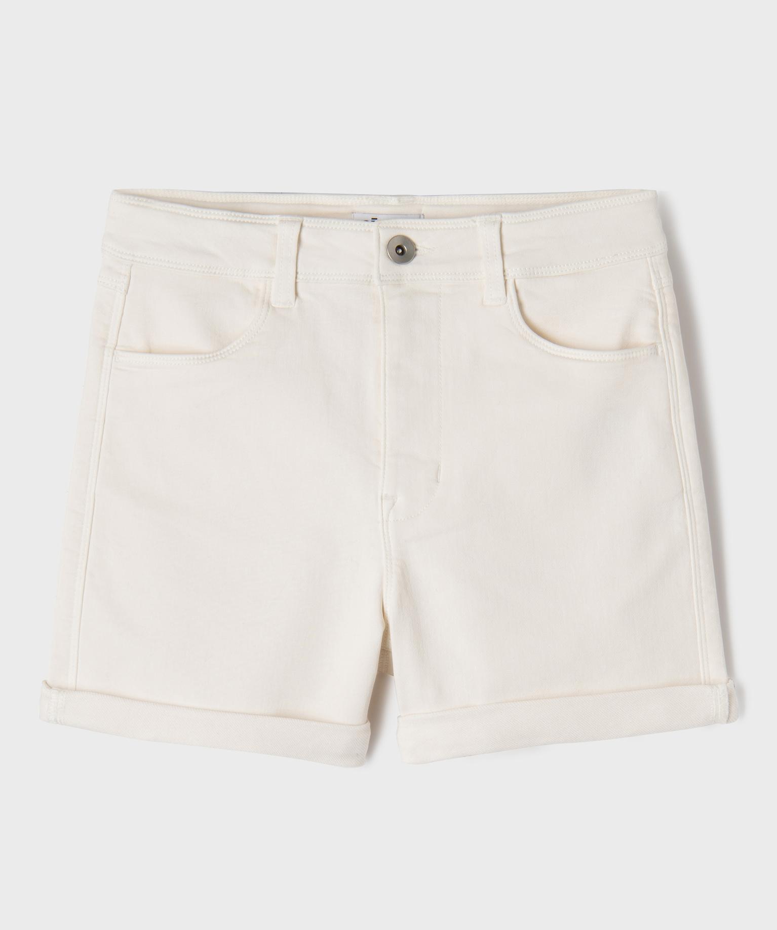 Ce short en toile denim entrera dans la composition de nombreux looks des ados tout au long de la saison estivale. Un short fille conçu en coton extensible particulièrement confortable, qui accompagne tous les mouvements. Il est doté d’une taille haute qui souligne la taille avec élégance, ajustable par élastique intérieur. Il se porte avec des revers en bas de jambes, associé à un tee-shirt imprimé ou une chemise et une paire de sandales plates. 4 poches. Fermeture par zip et bouton. Passants pour ceinture.