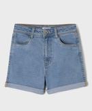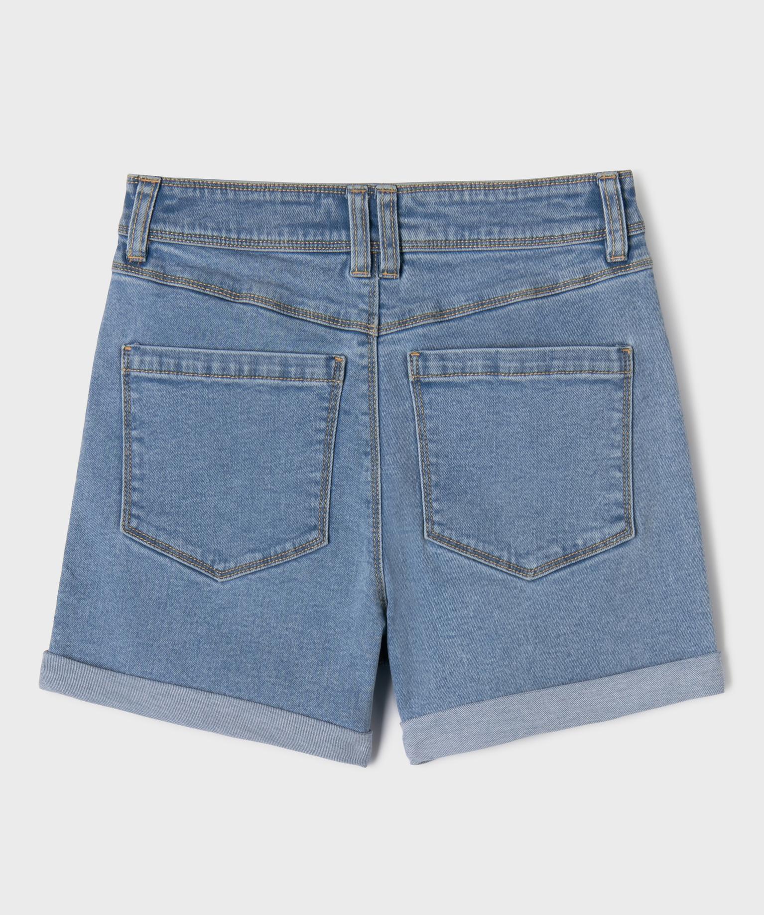 Short en toile denim avec taille haute ajustable fille bleu clair