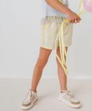 Short en toile taille haute avec ceinture élastique fille jaune