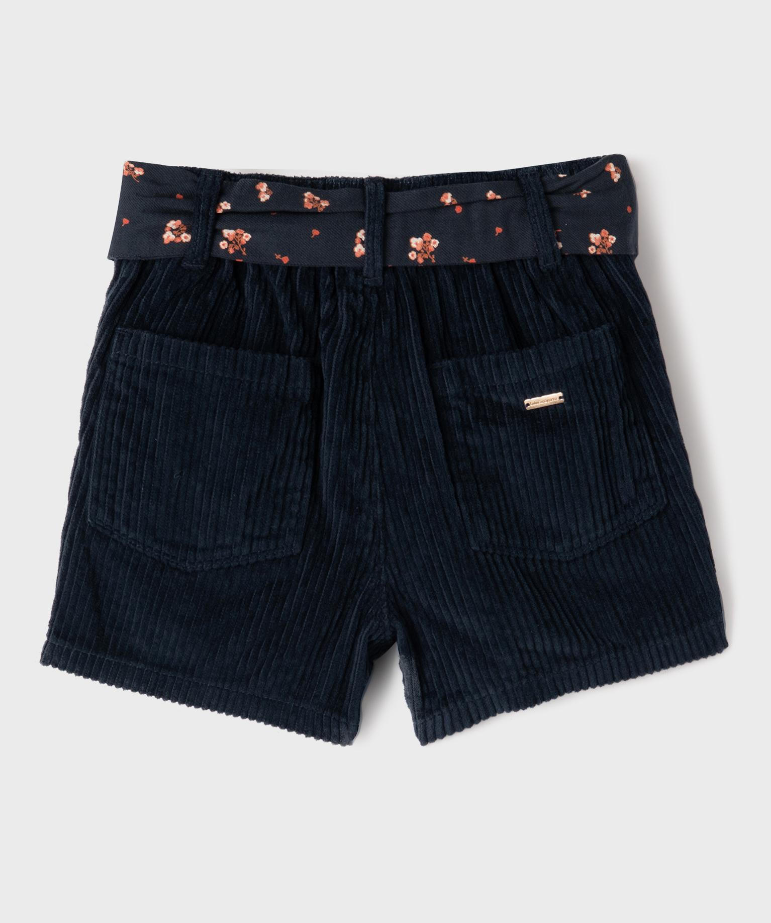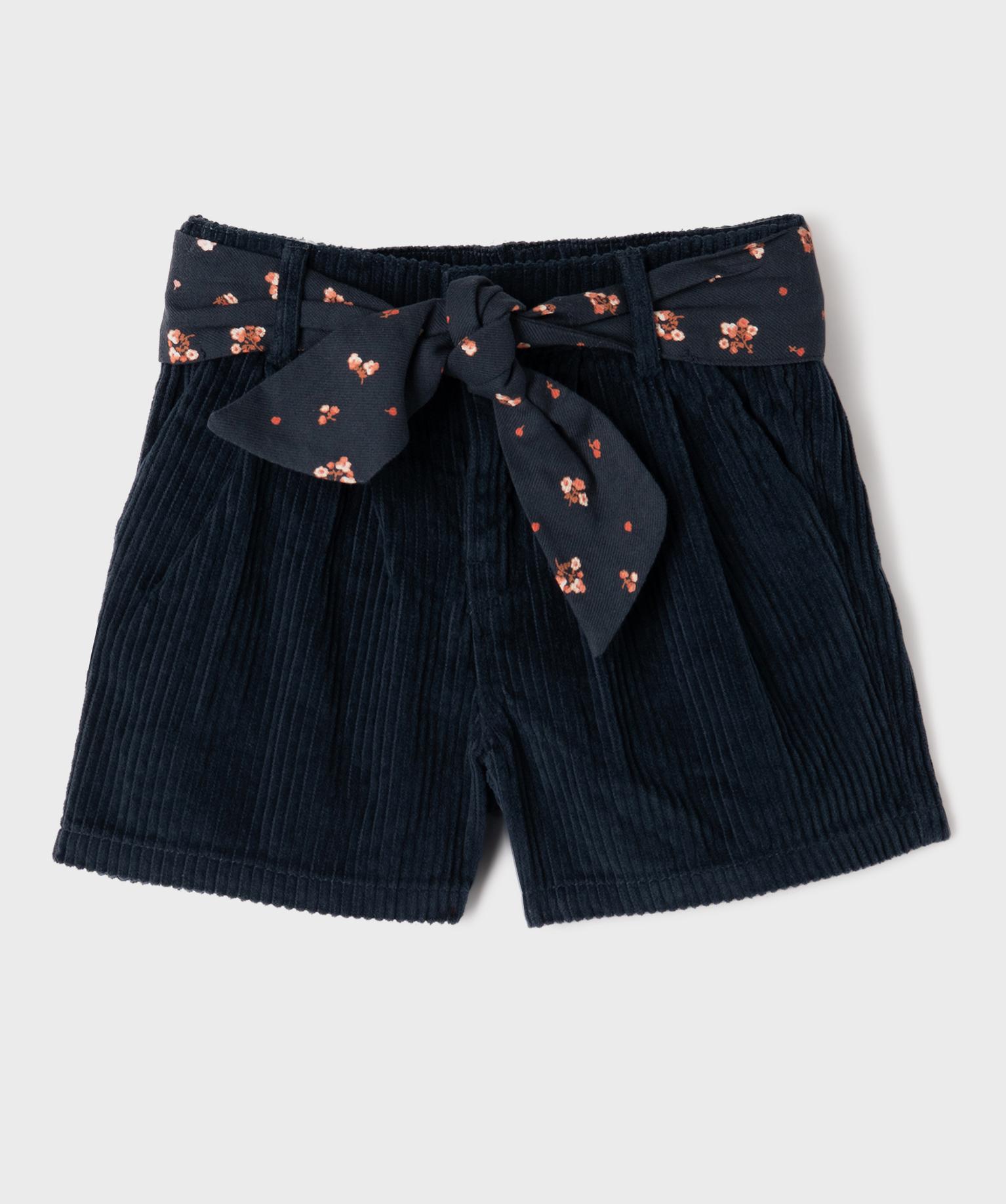 Short en velours côtelé à taille haute et ceinture à nouer fille - LuluCastagnette marine