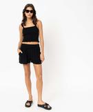 Un short pour femme à la fois élégant et confortable avec sa coupe ample avec pinces sur l’avant et sa ceinture effet drapé sur l’avant, élastiquée au dos. Ce short ample est confectionné à partir de fibre Lenzing™ Ecovero™, une fibre écologique produite à l'aide de pulpe de bois issu de forêts durables, certifiées FSC ou PEFC. Il se porte avec un tee-shirt et des baskets pour un look casual ou avec une chemise et des sandales à talon pour une allure plutôt chic. Deux poches italiennes.