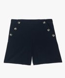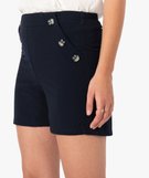 Un élégant short taille haute confectionné dans un crêpe fluide et légèrement extensible, pour le confort et le style ! Ce short femme doté de boutons décoratifs sur l'avant est largement inspiré des pantalons à pont marins. Il sera superbe avec un tee-shirt rayé, un crop top en crochet ou une blouse à col Claudine. Avec sa ceinture élastiquée dans le dos, le short est facile à enfiler et vous assure un maximum d'aisance tout au long de la journée. Ourlet surpiqué dans le bas.