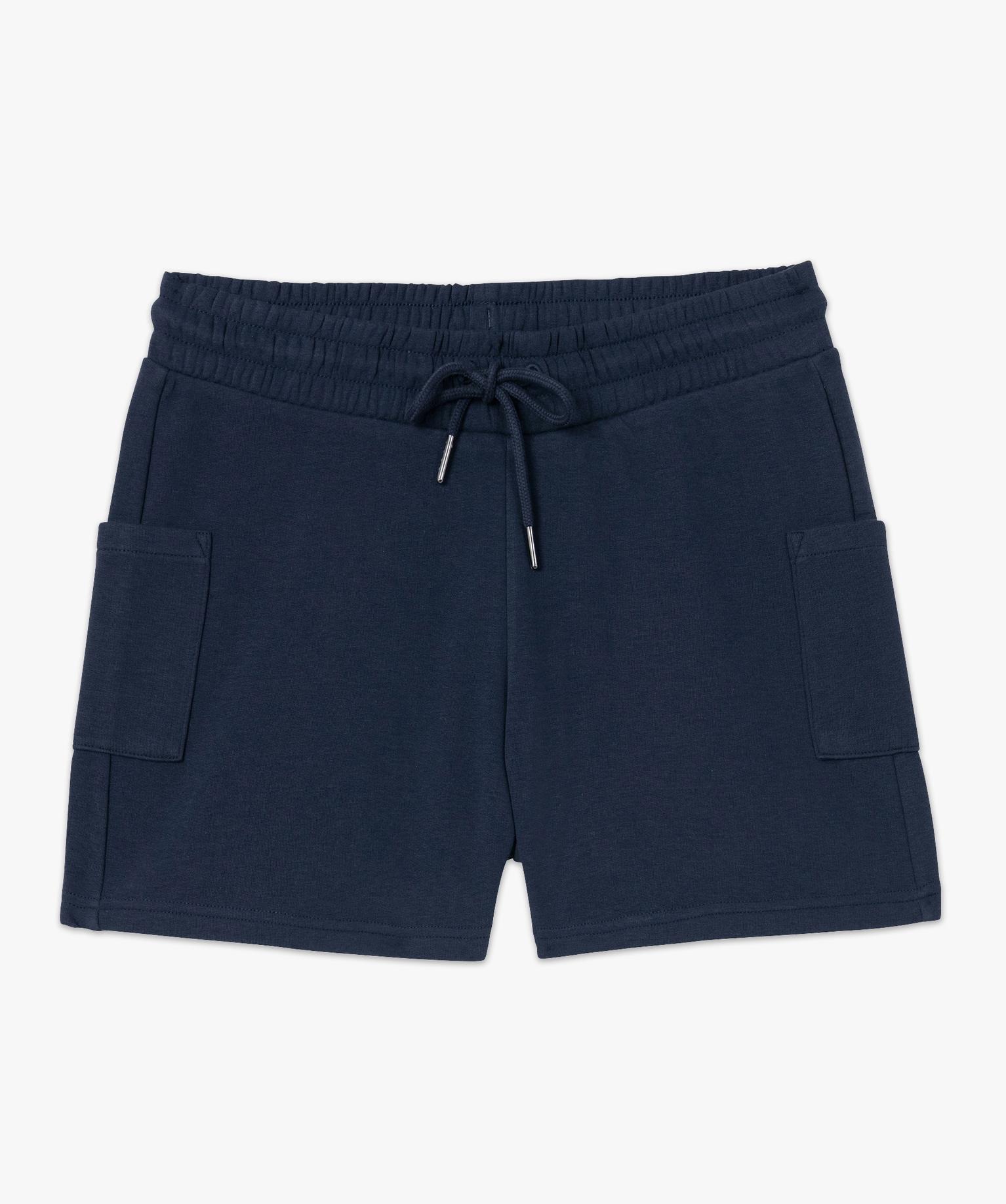 Short femme en maille avec ceinture élastiquée bleu fonce