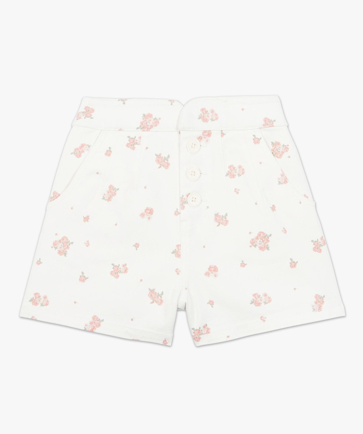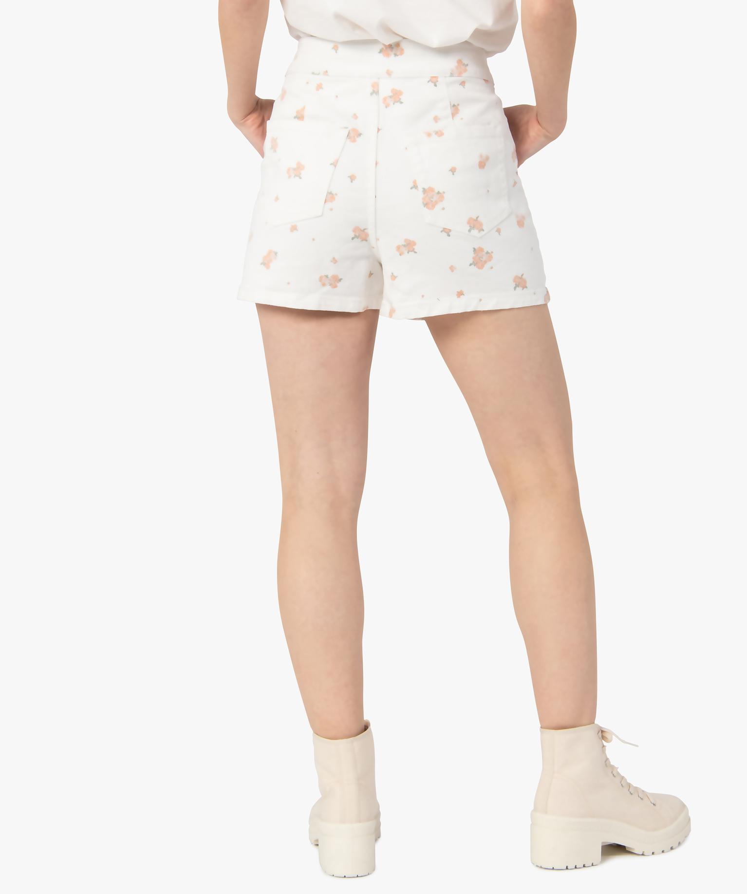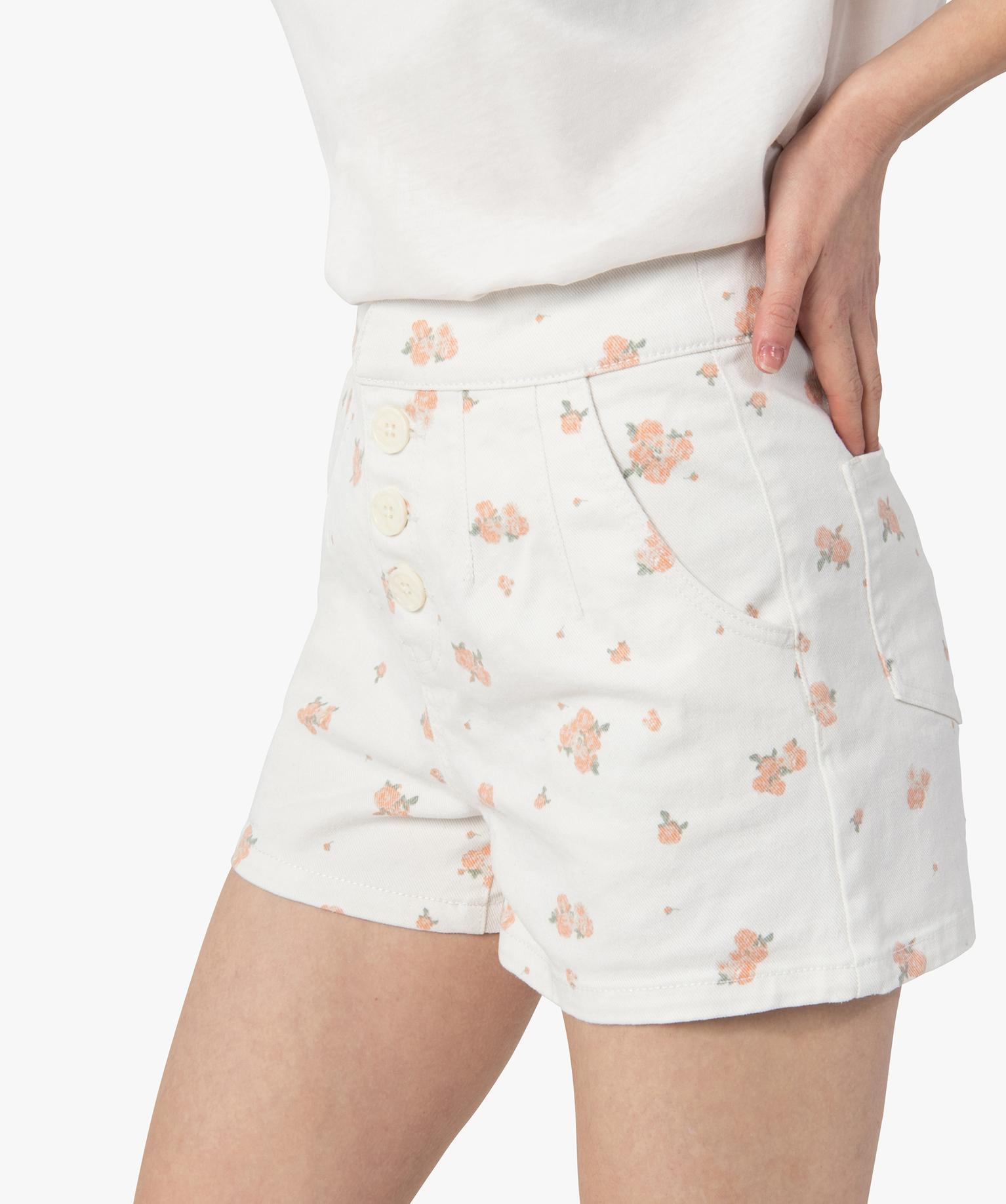 Short femme taille haute à motifs fleuris blanc chine