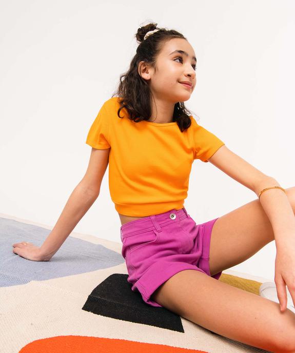 Le short denim fait partie des indispensables du vestiaire estival. Confortable et ultra tendance, il se porte avec tous les hauts, du plus casual au plus chic. Ce short fille est largement inspiré du short en jean avec ses deux poches sur l’avant et ses poches plaquées au dos, ses doubles surpiqûres et ses revers cousus en bas de jambes. Son coloris est obtenu grâce à un procédé de délavage plus respectueux de l’environnement. Avec sa coupe large et sa matière extensible, il offre un grand confort. Fermeture par zip et bouton.