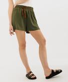 Short fluide avec taille élastique et ceinture fine femme kaki