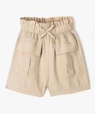 Ce short pour fille fera le bonheur des jeunes fashionistas, leur offrant un maximum de confort et de style. Ce short ample possède une taille haute avec ceinture élastique agrémentée d’un petit noeud fantaisie. Il se distingue par deux grandes poches à rabat sur l’avant qui ajoutent une touche de décontraction. Ce short fluide est confectionné dans une maille fluide à l’aspect légèrement froissé, alliant décontraction et élégance.