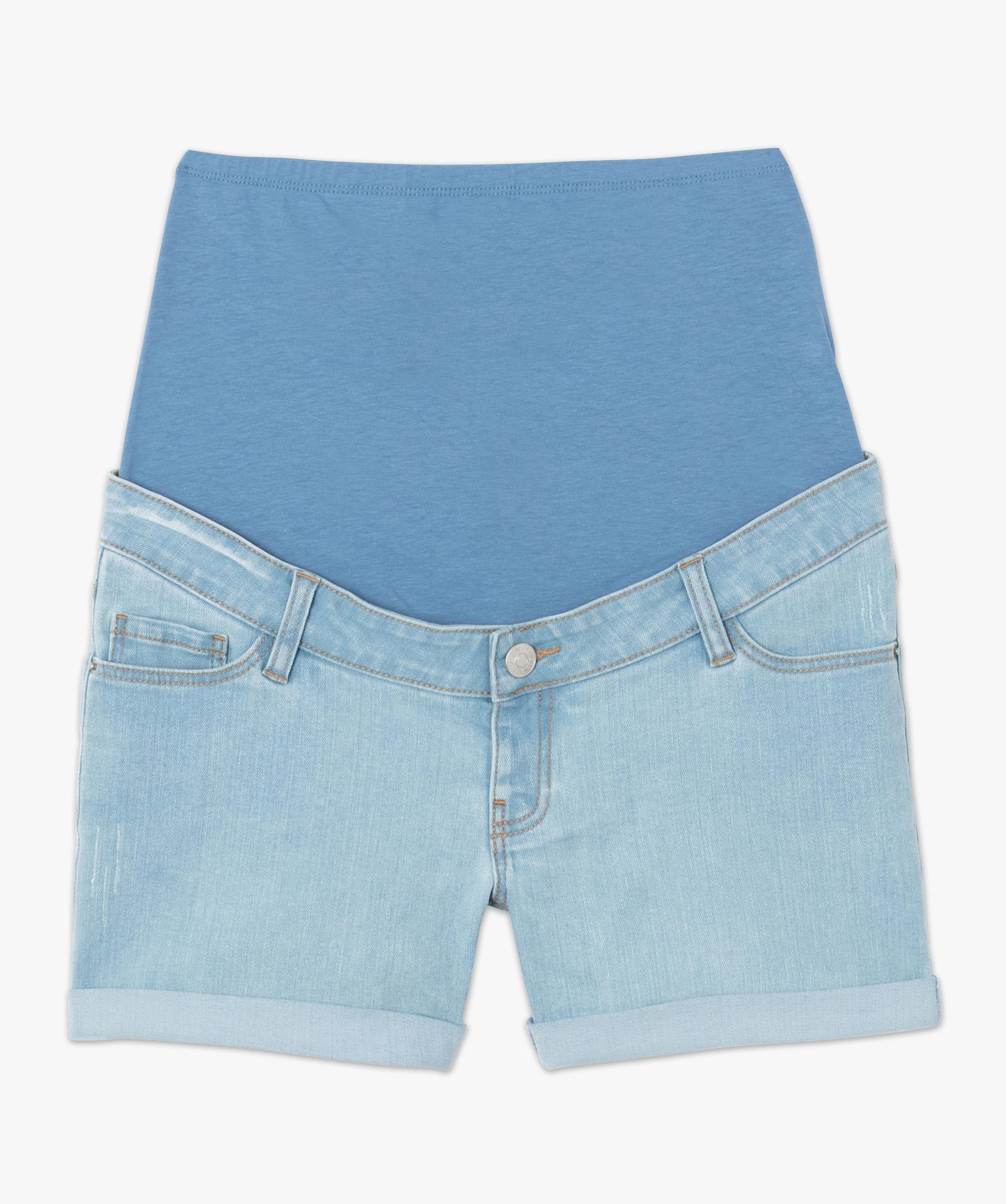 Short grossesse en jean bandeau taille haute bleu