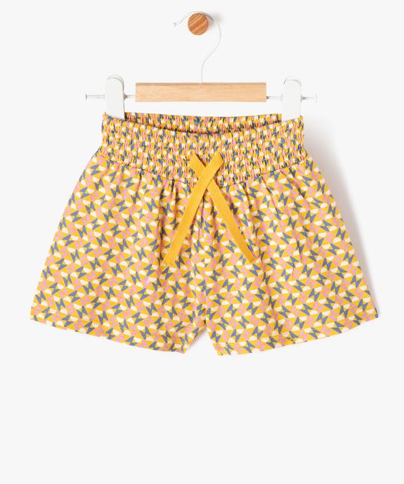 Ce short en maille fait partie des pièces indispensables pour habiller bébé avec style et confort. Un short fluide confectionné en coton et modal et orné de petits motifs aux couleurs lumineuses. Ce short bébé fille possède une large ceinture smockée assurant un habillage facile et un maximum de confort tout au long de la journée. Cette ceinture est agrémentée de petits cordons à nouer. Ce short imprimé se porte avec un tee-shirt ou un débardeur uni.