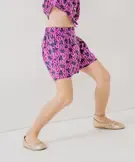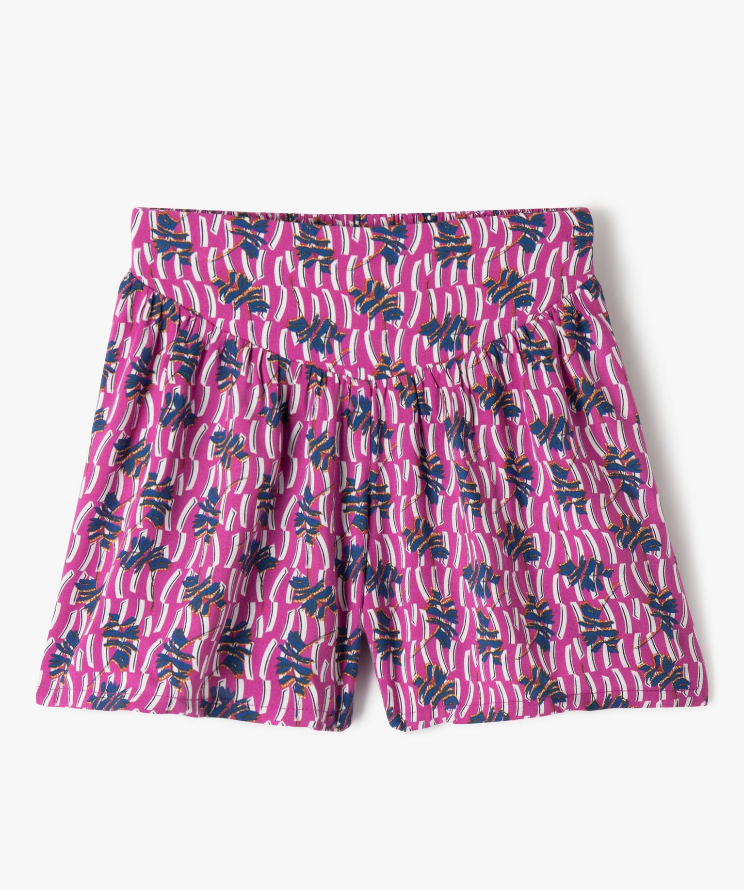 Superbe short large en viscose imprimée. Le short fille est léger, fluide, hyper agréable à porter. Ce modèle bien large est équipé d'une ceinture élastique au dos pour le confort et d'un empiècement sur l'avant qui lui donne l'air d'une jupe ample. On adore ! Le short possède un système de réglage intérieur pour un ajustement optimal.