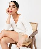 Osez le tailleur en été, mais avec un short ! Ce modèle ample à taille haute sera parfait. Le short se distingue par sa matière souple mais au tomber lourd, à ses pinces sur l'avant et à sa fermeture zip + crochet sous patte pour une discrétion absolue. Tellement chic ! Le short reste néanmoins confortable et pratique grâce à sa coupe large, sa ceinture élastique au dos et ses deux poches italiennes.