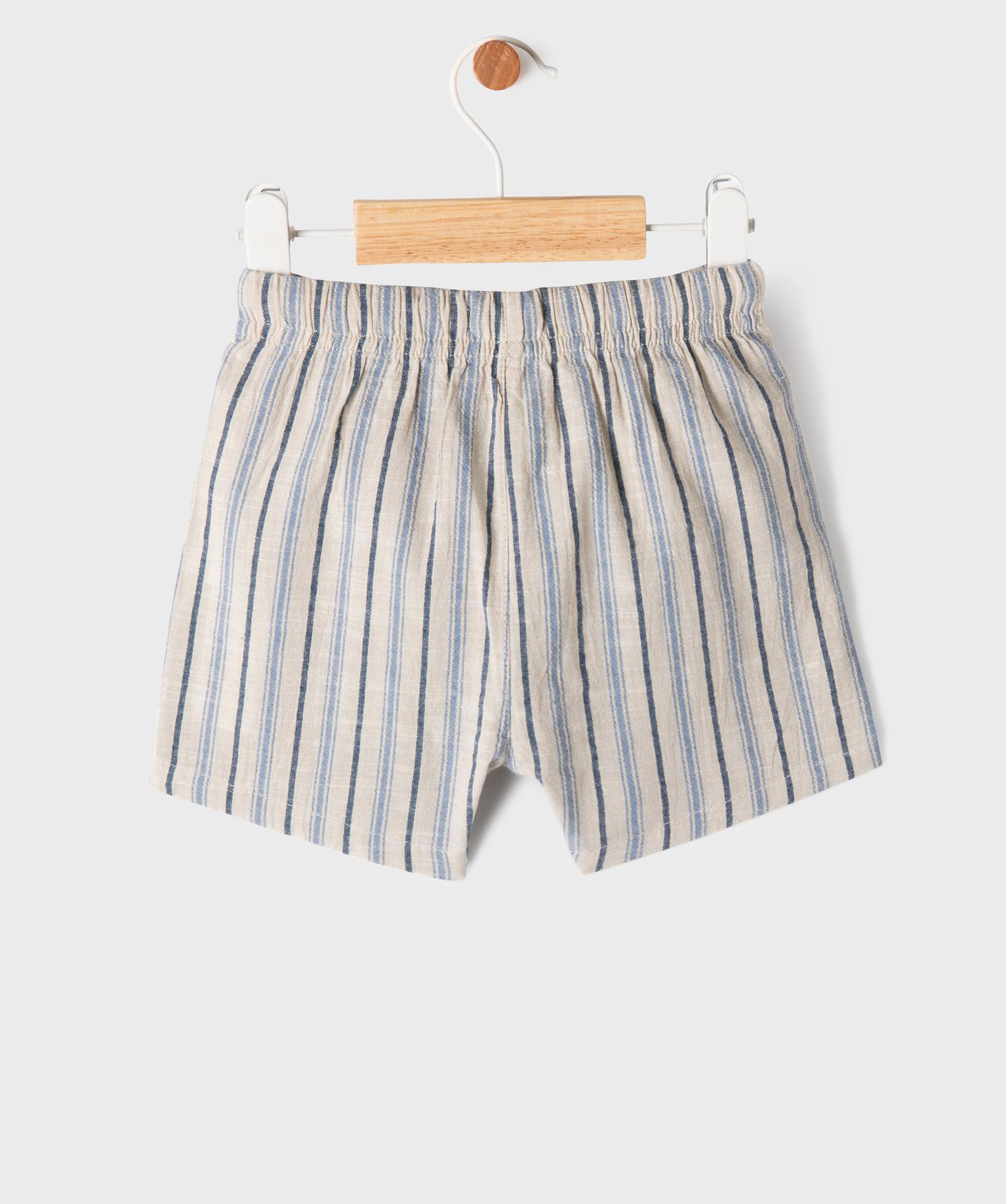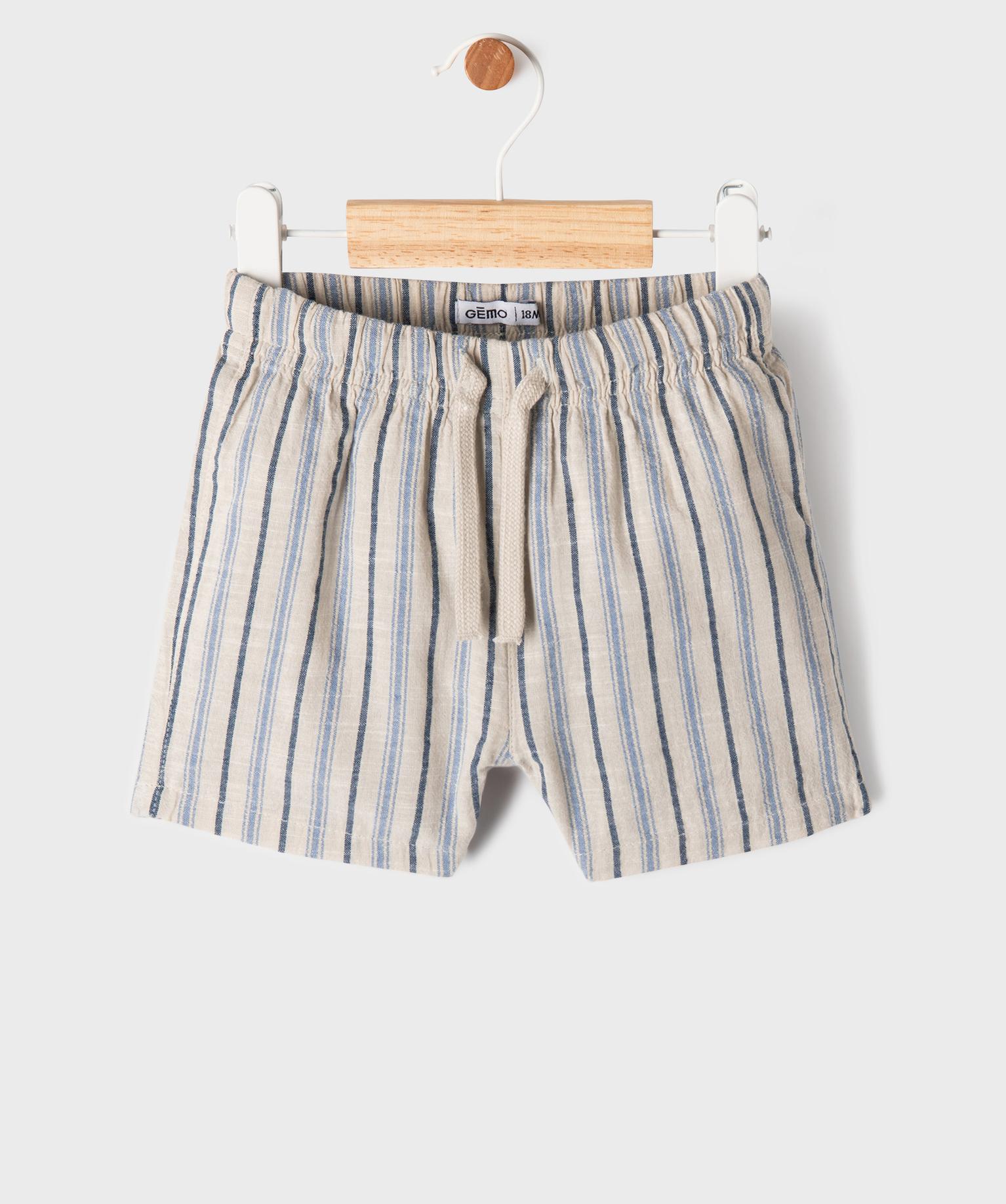 Short rayé en coton avec taille ajustable bébé garçon beige