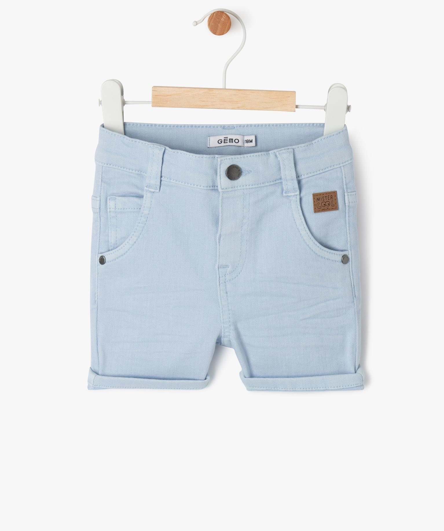 Short slim uni en toile extensible bébé garçon bleu