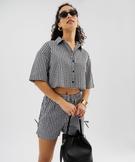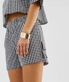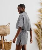 Short femme chic et champêtre, idéal pour composer des tenues de ville ou de cérémonie estivales. À combiner avec le chemisier court assorti pour un total look plein de charme, un tee-shirt basique ou une blouse élégante. Le short à carreaux vichy est fabriqué dans un fin tissu de coton subtilement froissé : le seersucker. On craque pour le petit détail de fentes dans le bas, maintenues par des nouettes. Le short possède une taille élastiquée confortable en toutes circonstances.