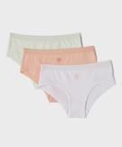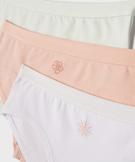 Lot de 3 shorties pour fille en coton biologique doux et extensible. Adorable, le lot comprend un shorty à motif soleil, 1 shorty à motif fleur, 1 shorty avec l'inscription "Joli soleil". Tous dans un coloris différent. Confortables, les shorties sont dotés d'un élastique plat et doux à la taille, et d'un fond doublé coton.