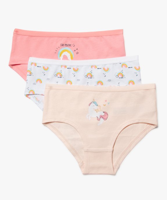 Shorty coton stretch imprimé licorne fille (lot de 3) rose