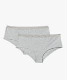 Shorty en coton stretch avec taille en dentelle femme grande taille (lot de 2) gris chine
