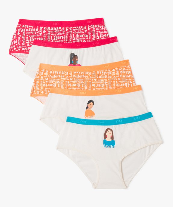 Laissez-vous séduire par les boxers "Liberté, Égalité, Culottée" de DIM ! Un lot de sous-vêtements femme de qualité à prix abordable composé de 5 shortys aux couleurs et aux imprimés variés. Les 5 shorties pour femme sont livrés dans une chouette pochette réutilisable fermée par un bouton-pression. Les boxers sont confectionnés en coton doux avec une pointe d'élasthanne et une ceinture élastique pour le confort. Leur atout ? Pas d'étiquette qui gratte ou gêne ! Ceinture satinée marquée DIM ton sur ton à la taille. Fond doublé.