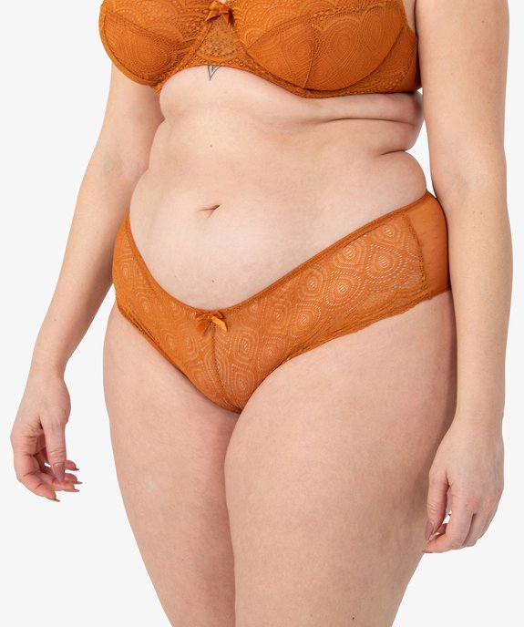 Shorty en dentelle et tulle femme grande taille marron vif