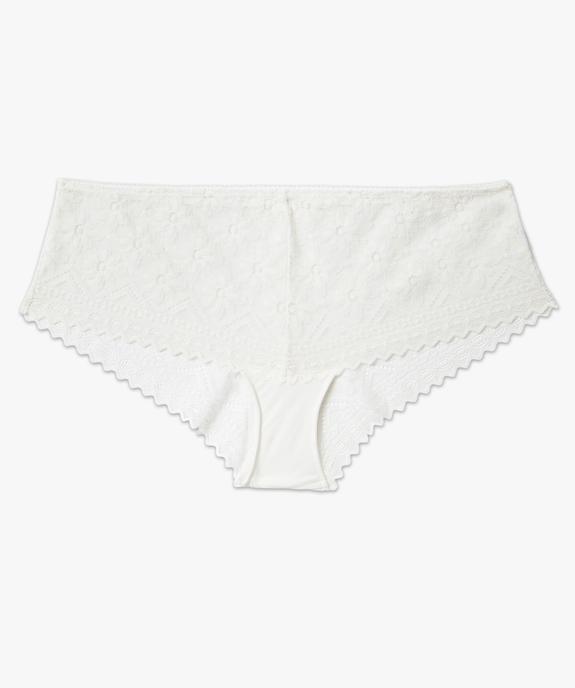 Découvrez l'élégance de ce charmant shorty en dentelle, conçu pour sublimer les courbes voluptueuses avec raffinement. Ce shorty femme grande taille (du 46/48 au 54/56) dévoile un délicat jeu de transparence, avec un fond en microfibre doublé de coton pour un confort optimal. Les finitions dentelées, non élastiquées, flottent gracieusement sur les hanches, sans marquer la silhouette. Associez ce sublime shorty transparent au soutien-gorge assorti pour créer un ensemble romantique qui mettra en valeur votre féminité avec élégance.