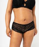 Ce shorty en dentelle, agrémenté de détails scintillants, allie à la perfection confort et sophistication. Sa dentelle extensible offre une douceur incomparable, tout en offrant une légère transparence qui sublime votre silhouette. La ceinture élastique est délicatement décorée d’une finition festonnée et d’un petit nœud assorti, ajoutant une touche de charme supplémentaire. Grâce à ses finitions sans coutures, ce shorty femme grande taille (du 46/48 au 54/56) se fond discrètement sous vos vêtements, assurant une silhouette impeccable. Associez-le au soutien-gorge assorti pour créer un ensemble à la fois élégant et sensuel qui mettra en valeur votre féminité.